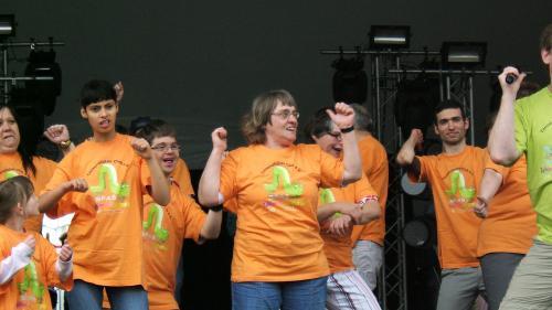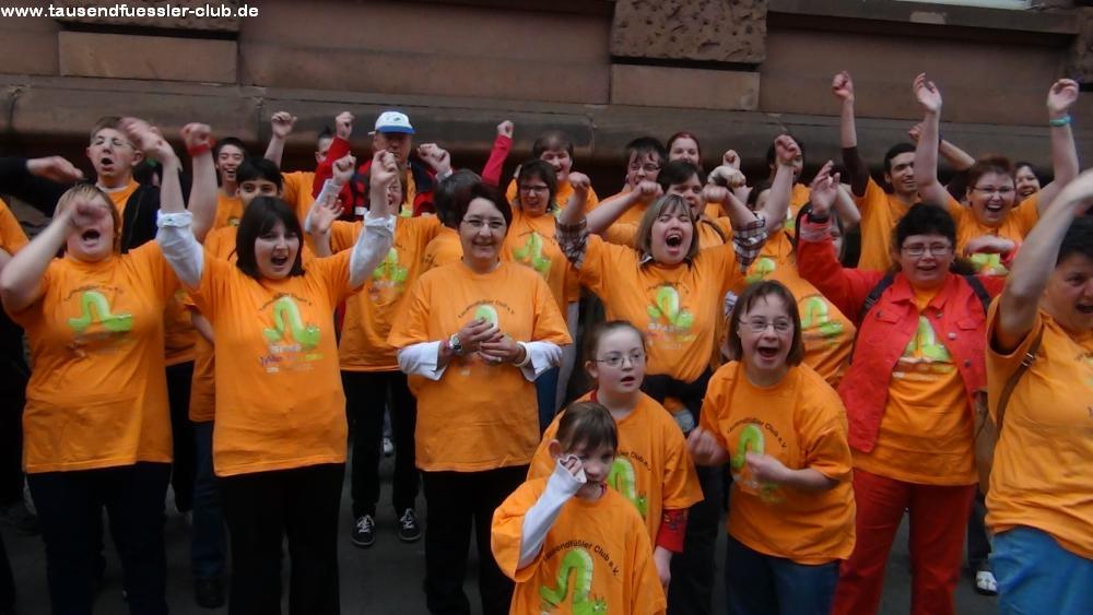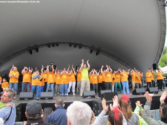 Fast 50 Tausendfüßler aus den verschiedenen Gruppen tanzten für und mit dem Publikum, Zugabe um Zugabe. Eine halbe Stunde super Stimmung, Spaß und Bewegung.
