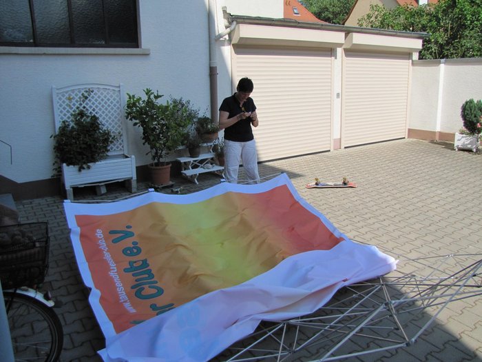 Dank einer zweckgebunden Spende bekommen die Tausendfüßler eine Werbewand. Nun sind wir bei unseren Auftritten und Treffen deutlicher zu erkennen. Danke an Gitta Korbach und Jochen Petzinger. (April 2010)